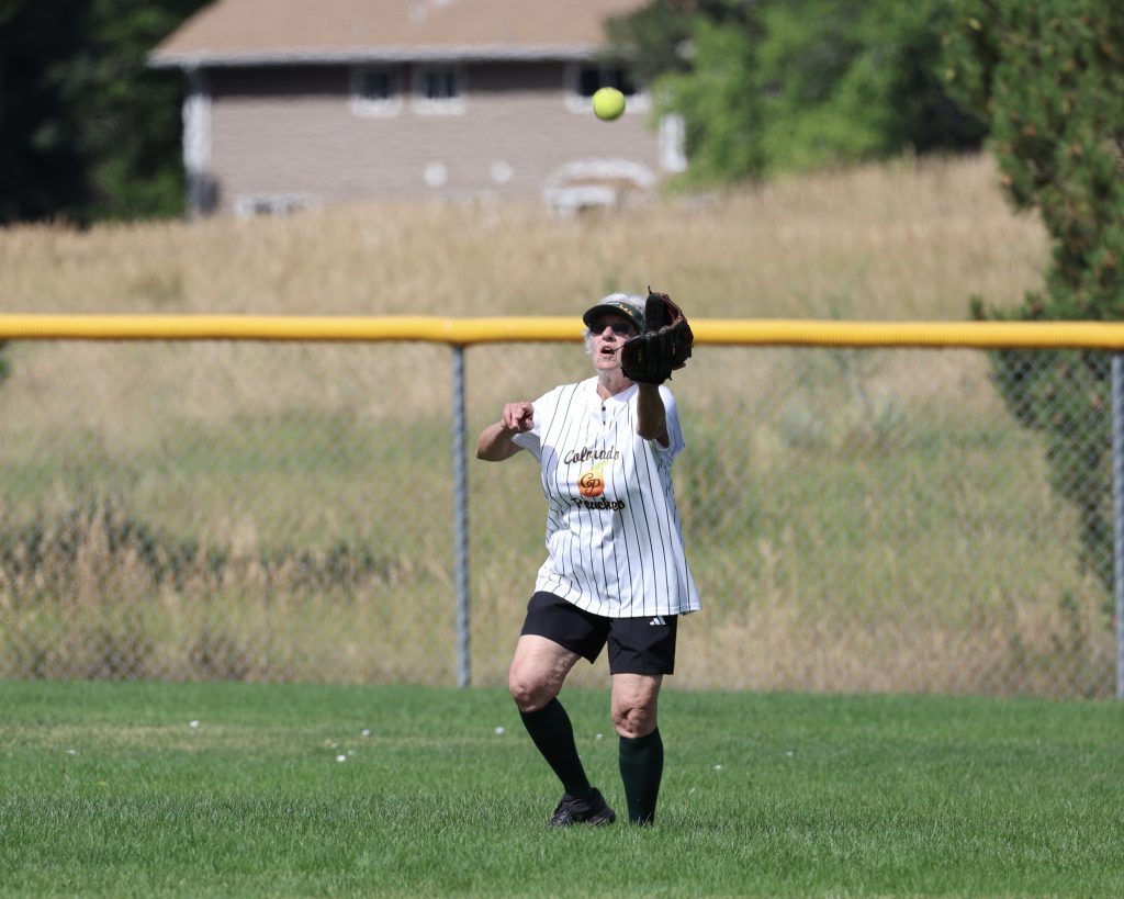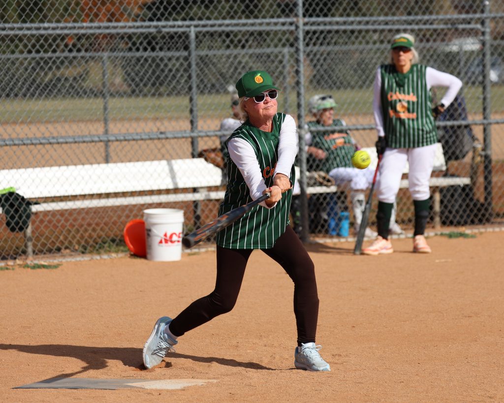I’ve always been athletic and very competitive, but a good sport even when I lose. Basketball was my sport in high school and part of college, playing semi-pro in 1956-1957 for a team in Lexington, Missouri. For the past 50 plus years, I’ve been a timekeeper for the local high schools and the Colorado State High School basketball championship tournament. I played league golf until recently and spent over 25 years playing tennis on the National Senior Women’s tennis circuit, traveling to different states and overseas, going to Poertschach Austria in 2018 for the Friendship Cup. Hip surgery has prevented me from being competitive at that level. Thank goodness for the Peaches softball team giving me an opportunity to remain competitive.